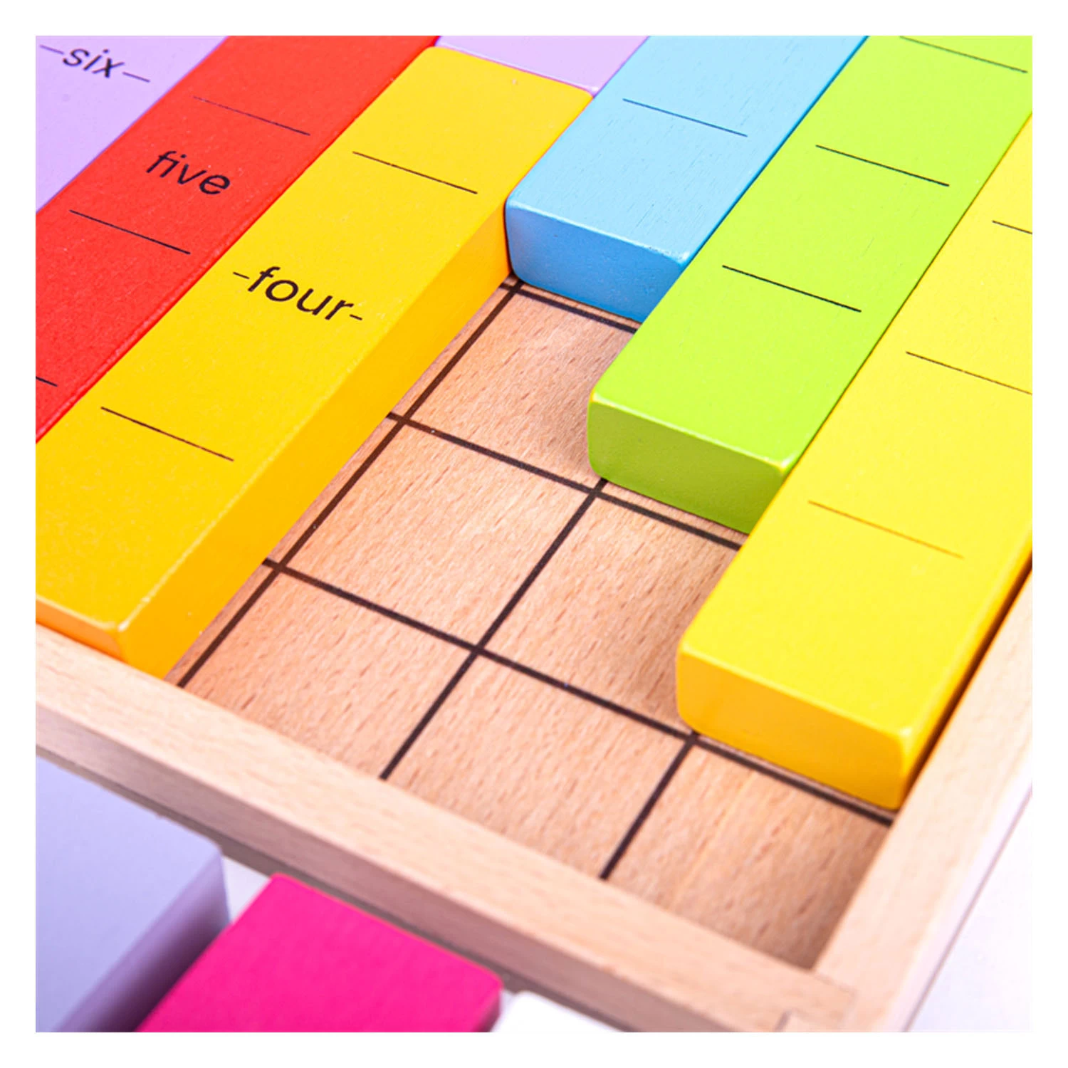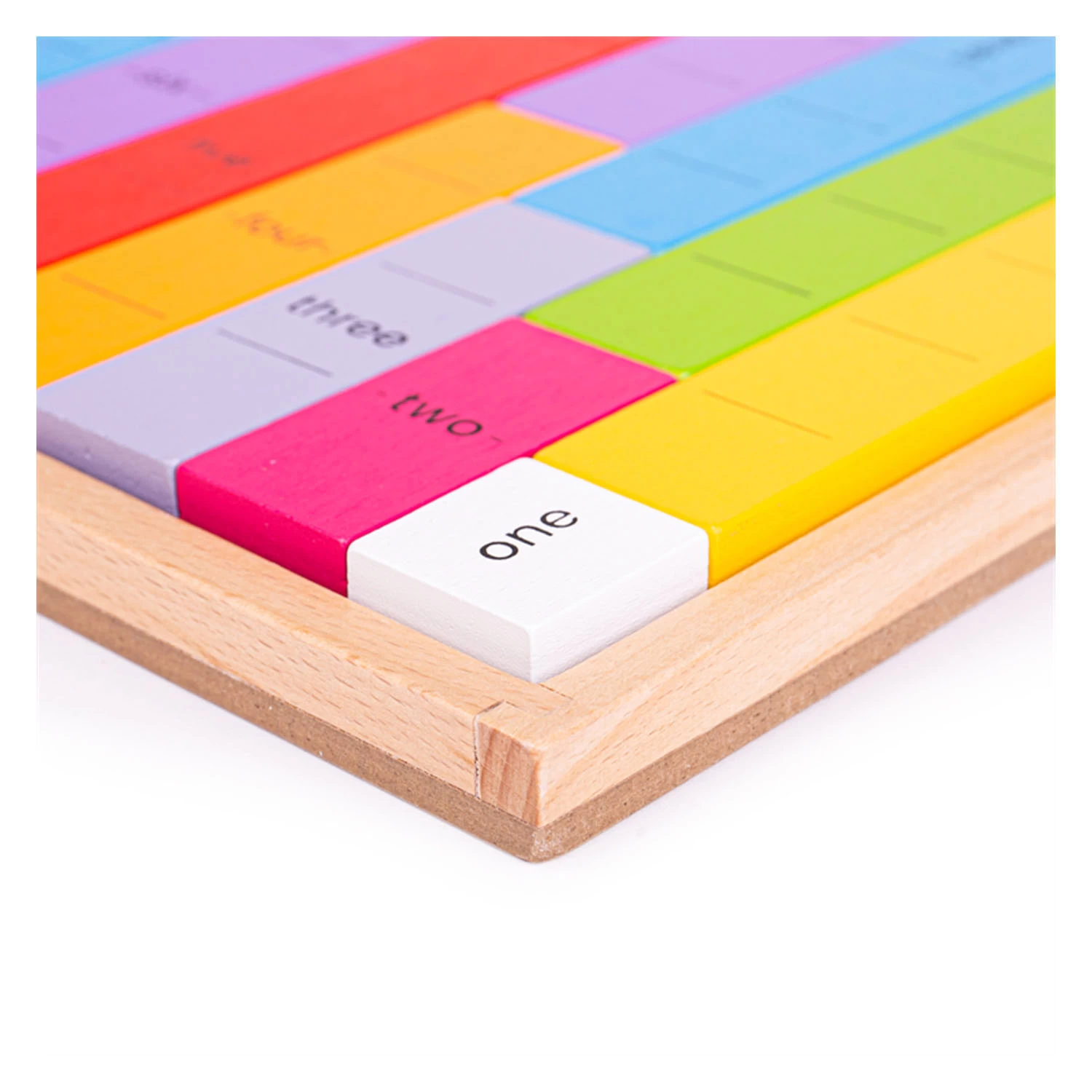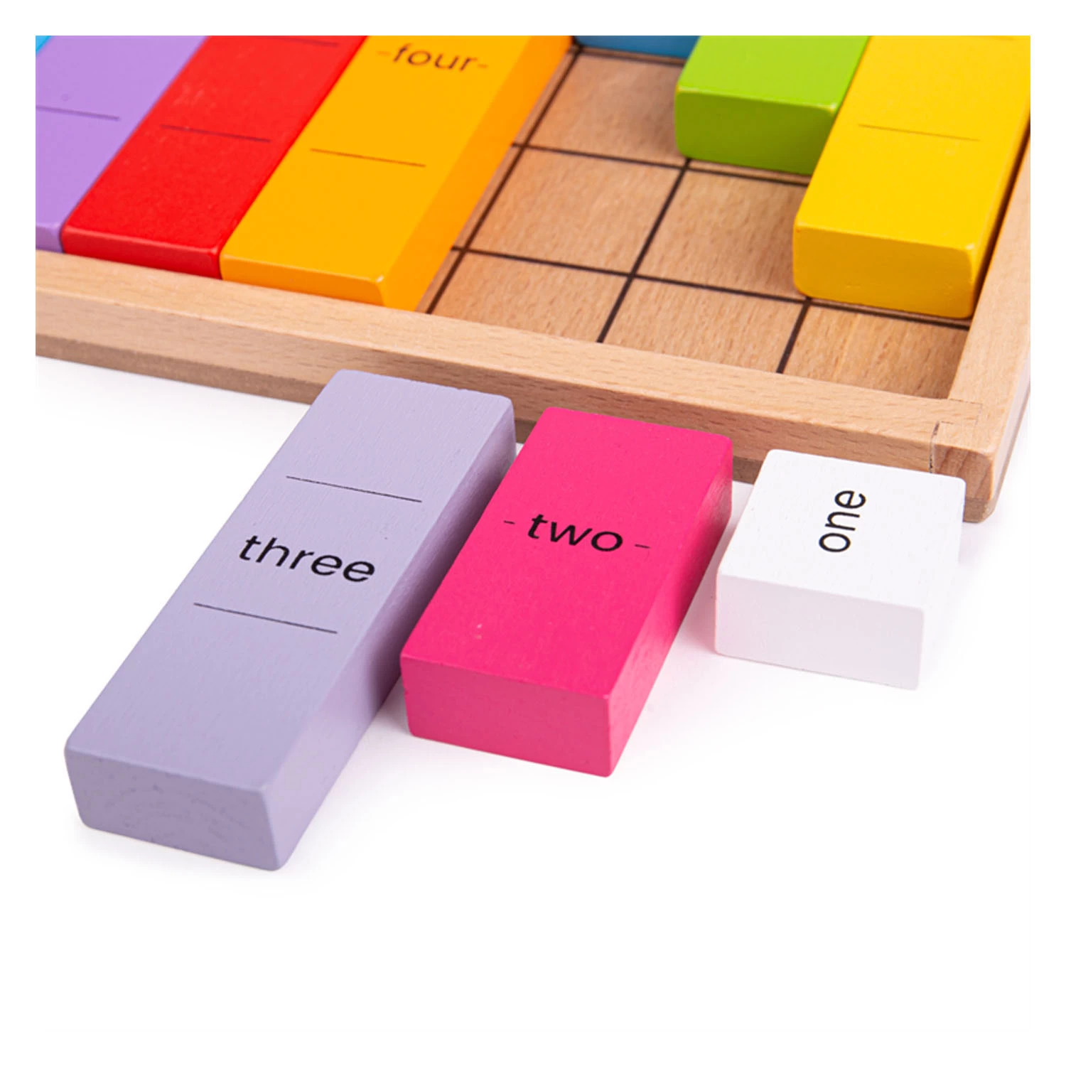 Leer cijfers verbinden met dit houten rekenspel van Bigjigs. Het spel helpt kinderen getallen te begrijpen en combineren. De blokjes hebben de nummers 1 t/m 10. Plaats de verschillende houten blokken op de juiste plaats in het houten legbord. Gemaakt van hoogwaardige, verantwoorde materialen. Gecoat in niet-giftige, kindvriendelijke verven en lakken.