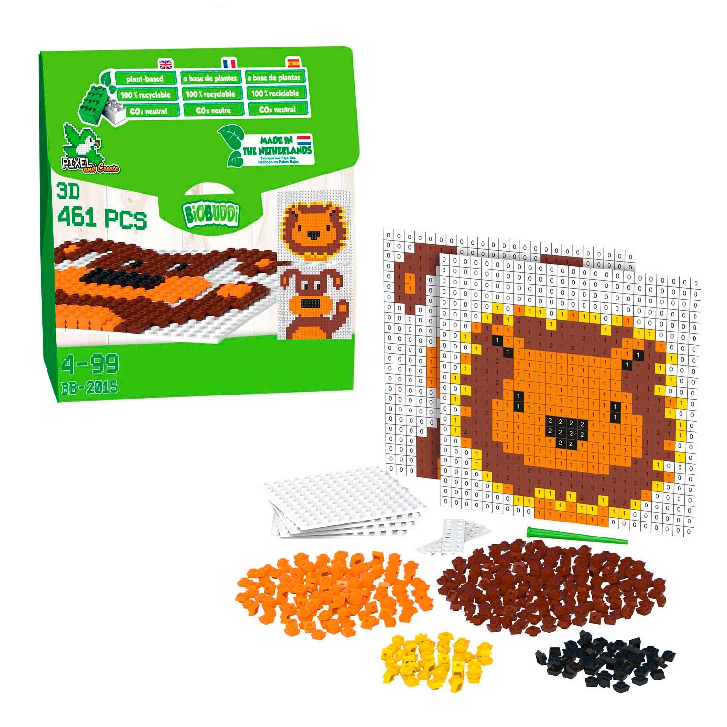 Laat je artistieke kant zien met deze BiOBUDDi Pixel and create uitbreidingsset. Deze duurzame in Nederland geproduceerde blokjes, geven je de vrijheid om allerlei verschillende creaties te maken in 2D en 3D. Het is een leuke manier om je creativiteit de vrije loop te laten. Bouw samen of alleen één van de voorbeeldkaarten na of ga aan de slag met je eigen ideeën! In de verpakking zitten 450 pixelblokjes in de kleuren geel, oranje, bruin en zwart, vier bouwplaten, vier koppelstukjes, een remover en twee voorbeeldkaarten.