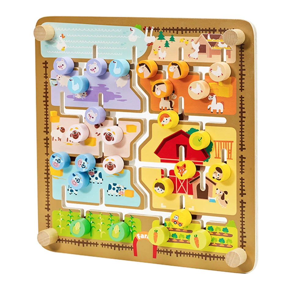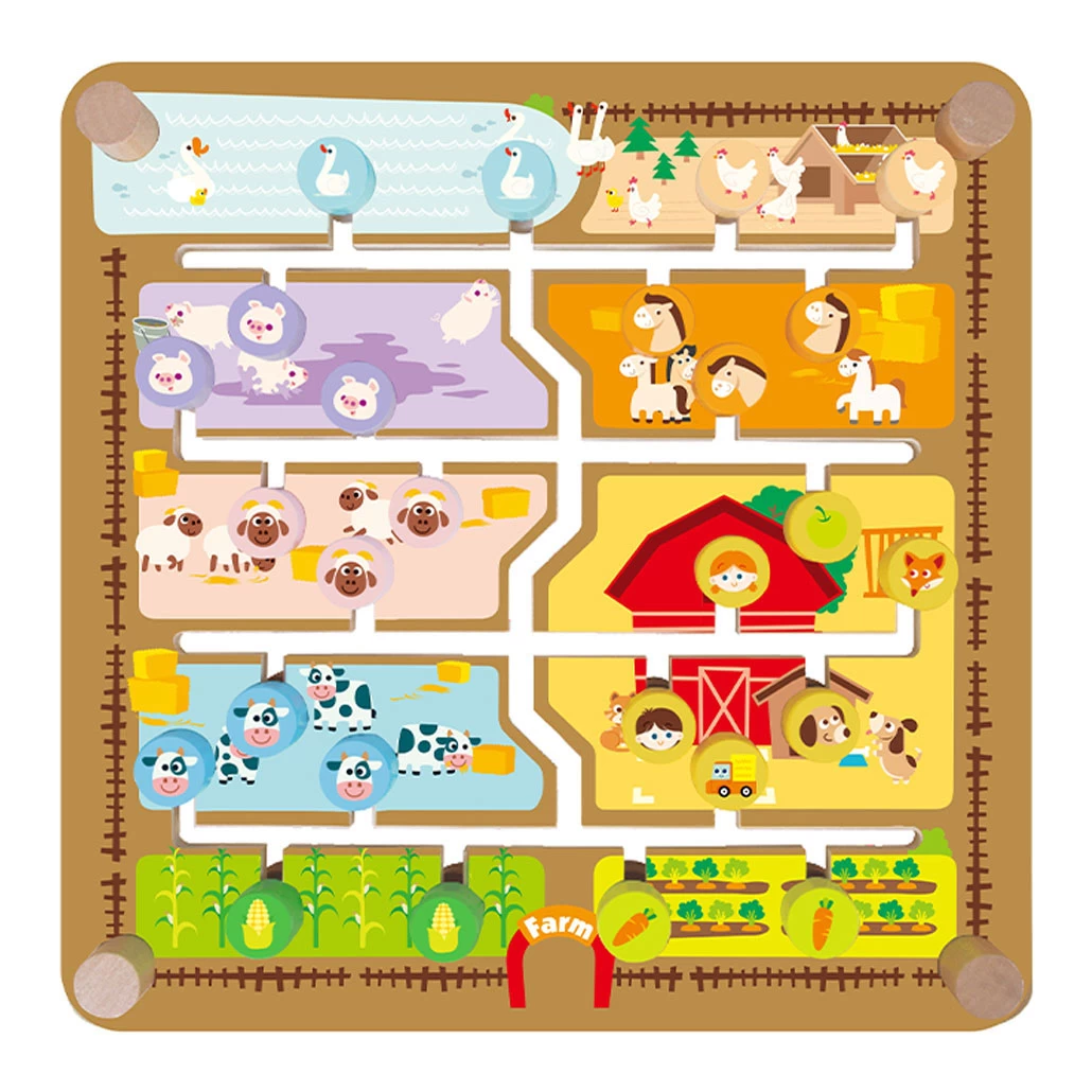 De varkentjes gaan in de modderpoel, de boer in de schuur, de koeien in de wei… alle dieren blij! Dit originele 2in1 Houten Padvinderspel van Classic World maakt leren wel heel erg leuk. Aan de ene kant van het houten speelbord ontdek je het leven op de boerderij, aan de andere kant oefen je met letters en woorden.