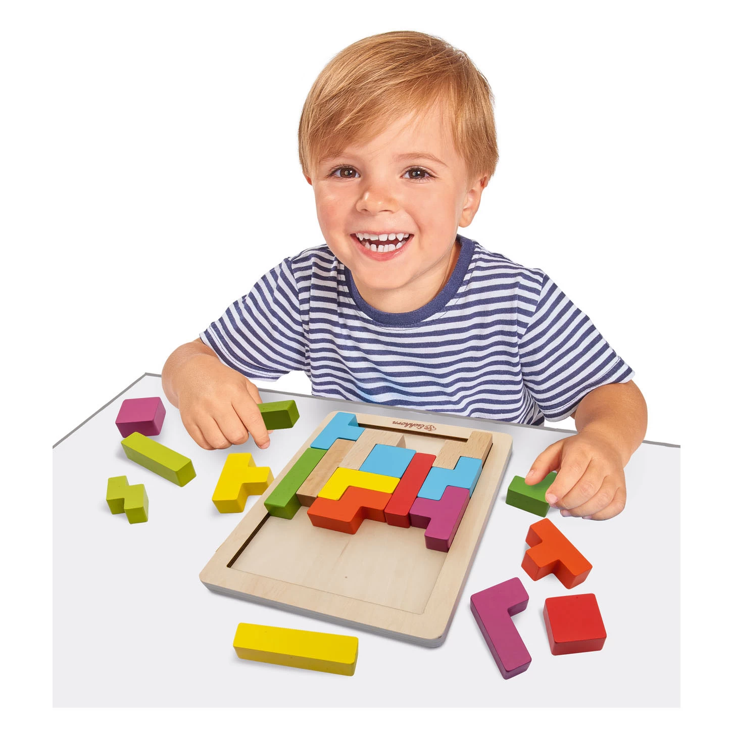 Met dit behendigheidsspel van Eichhorn kan je je kleur- en vormwaarneming trainen. Om het vorm-legspel op te lossen, moeten de houten plankjes in de juiste combinatie in de vorm worden geplaatst. Na enkele pogingen zullen de nieuwsgierige ontdekkingsreizigers het onder de knie krijgen en steeds vaardiger worden. De afmetingen van het spel zijn 18 bij 15 centimeter. Inhoud: 20 stenen, 5 verschillende vormen. Geschikt voor kinderen vanaf 4 jaar oud.