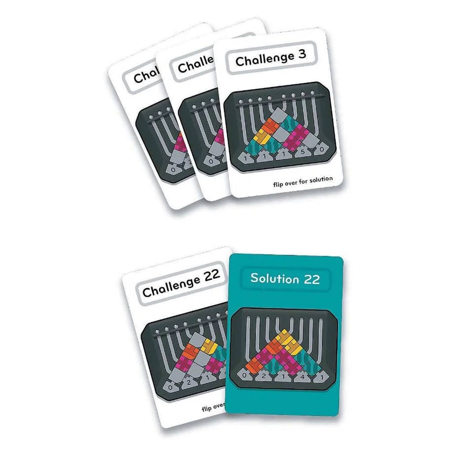 Kies om te beginnen één van challenges uit die op de kaarten afgebeeld staan. Op de kaart staat aangegeven wat je alvast kunt klaarleggen en hoeveel knikkers er in ieder bakje moeten komen. Vul de puzzel aan met de overige knikkergeleiders zodat er in ieder bakje precies het juiste aantal knikkers komen. Gelukt? Dan kan je nu door naar de volgende challenge!