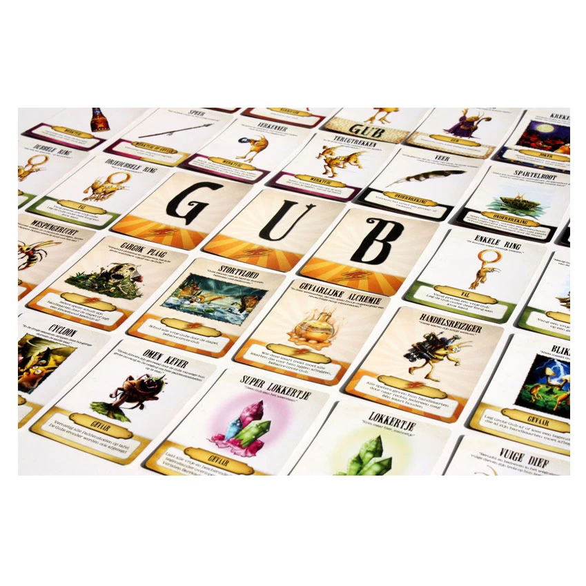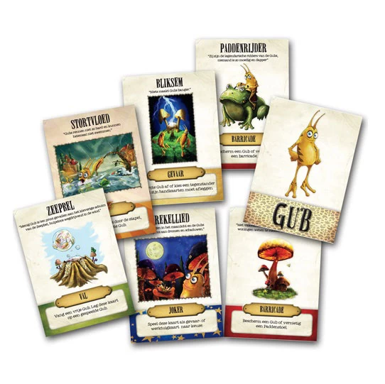 Neem een kijkje onder de bedauwde bladeren en aanschouw de geheime strijd van de Gubs. Speel dit slimme Kaartspel, waarin je probeert de machtige GUB-kolonie te bouwen. Maak gebruik van de wijsheid van Grote Gub of laat je beschermen door een Paddenrijder, terwijl je je verweert tegen ontelbare vallen, lokkertjes en andere onverwachte gebeurtenissen. De weg naar de overwinning is elke keer anders en je bent pas veilig als de laatste kaart is gespeeld! Dynamisch spel met veel interactie tussen de spelers!
