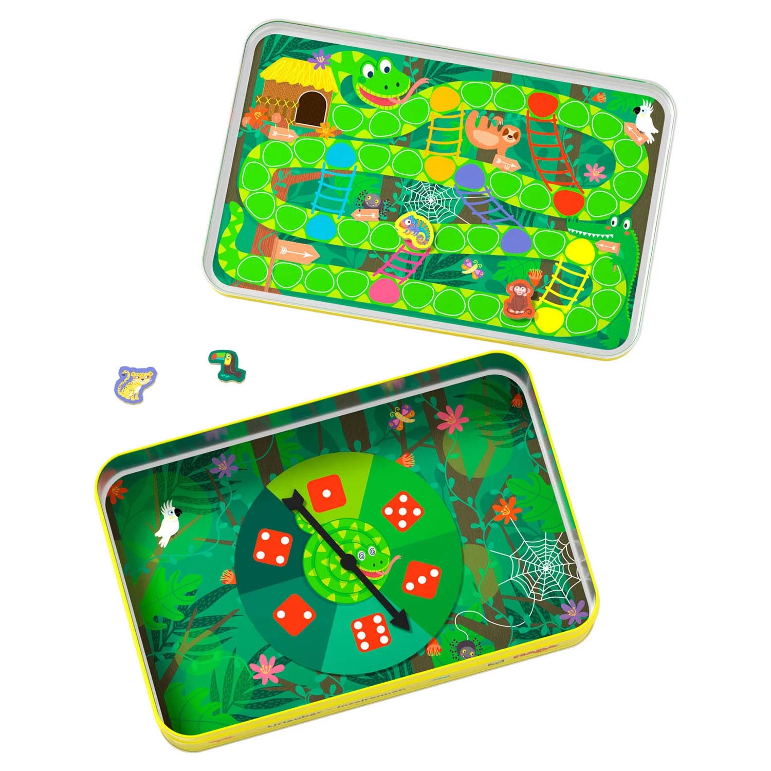 Inhoud: 2 magnetische spelborden, 4 magnetische jungledieren, 1 magnetische schijf met draaipijl, 1 handleiding