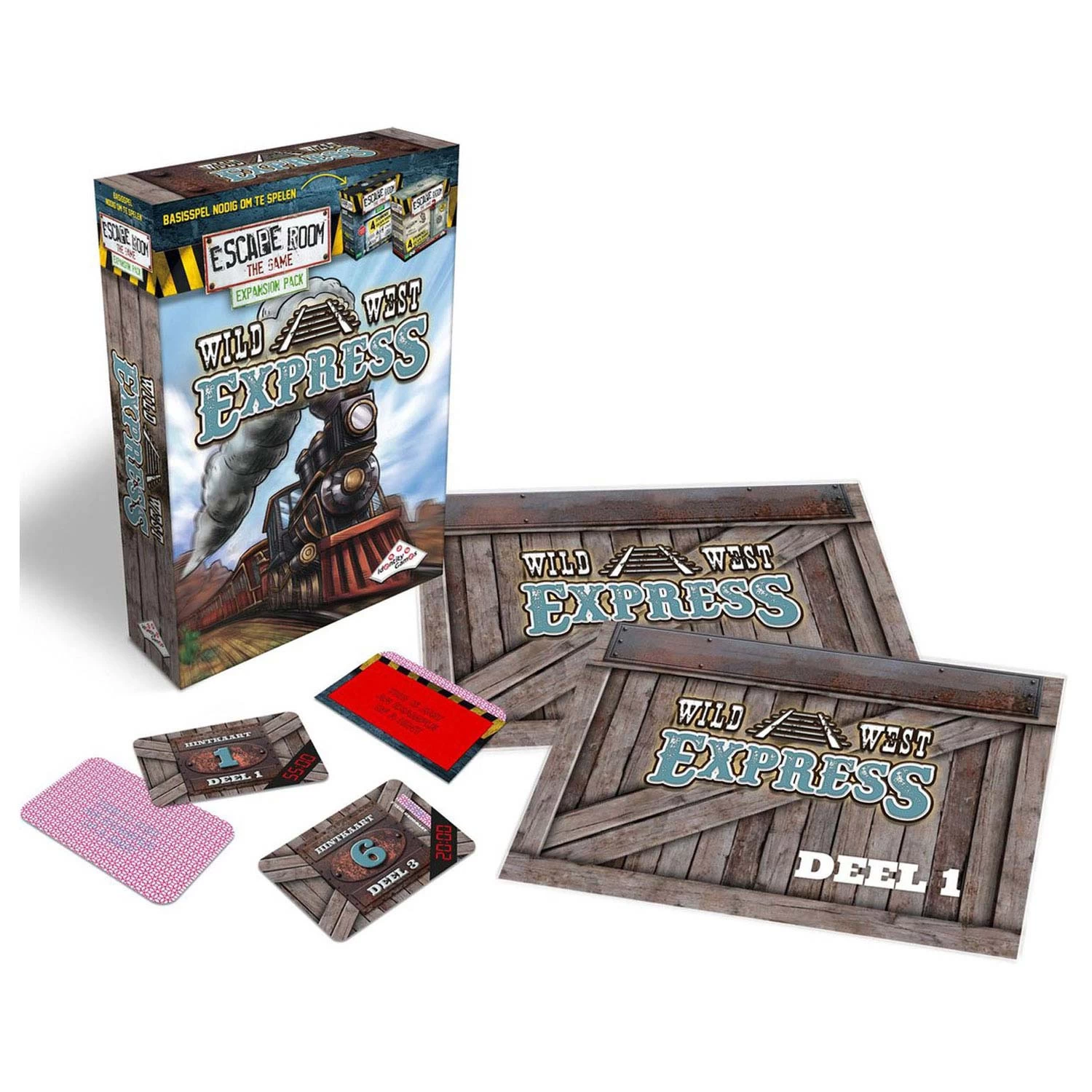 Uitbreiding voor Escape Room The Game. Jullie ontspannen rit met de Wild West Express wordt abrupt verstoord wanneer de trein wordt aangevallen door een bende bandieten. Jullie proberen ze nog te verjagen, maar zonder succes. Wanneer de bandieten jullie naar de gevangeniswagon slepen horen jullie hun leider roepen: āOkĆ© jongens! Grijp wat je grijpen kan en spring weer op je paard, voordat deze trein het ravijn in stort!ā Geschikt voor 3 tot 5 spelers. Het spel duurt ongeveer 60 minuten. Moet gecombineerd worden met Escape Room The Game Basisspel (art. 3910127).