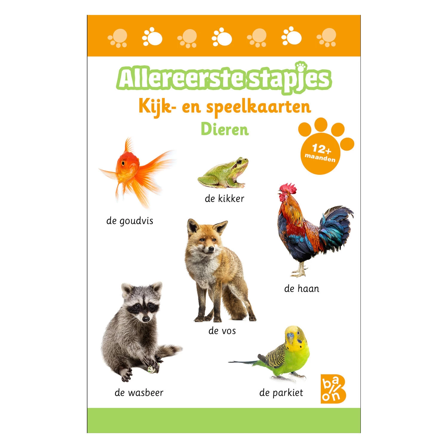 Een doos vol vrolijke, felgekleurde kaarten om samen met je peuter nieuwe woordjes te leren en zijn eerste spelletjes te spelen. Op de kaarten vind je 100 nieuwe woordjes die nauw aansluiten bij de leefwereld van je kind. Daarnaast bevat deze doos ook uitgebreide instructies voor de ouders en tal van ideeën voor leuke spelletjes. Zo breidt je kapoen al spelend zijn woordenschat uit en zet hij zijn eerste stapjes naar abstract denken.