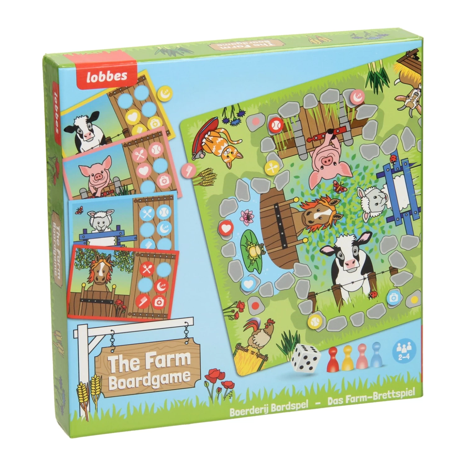 Het Lobbes boerderijspel is geschikt voor 2 tot 4 spelers. In de doos vind je het speelbord, kartonnen taakkaartjes, 4 pionnen, een dobbelsteen en spelhandleiding.