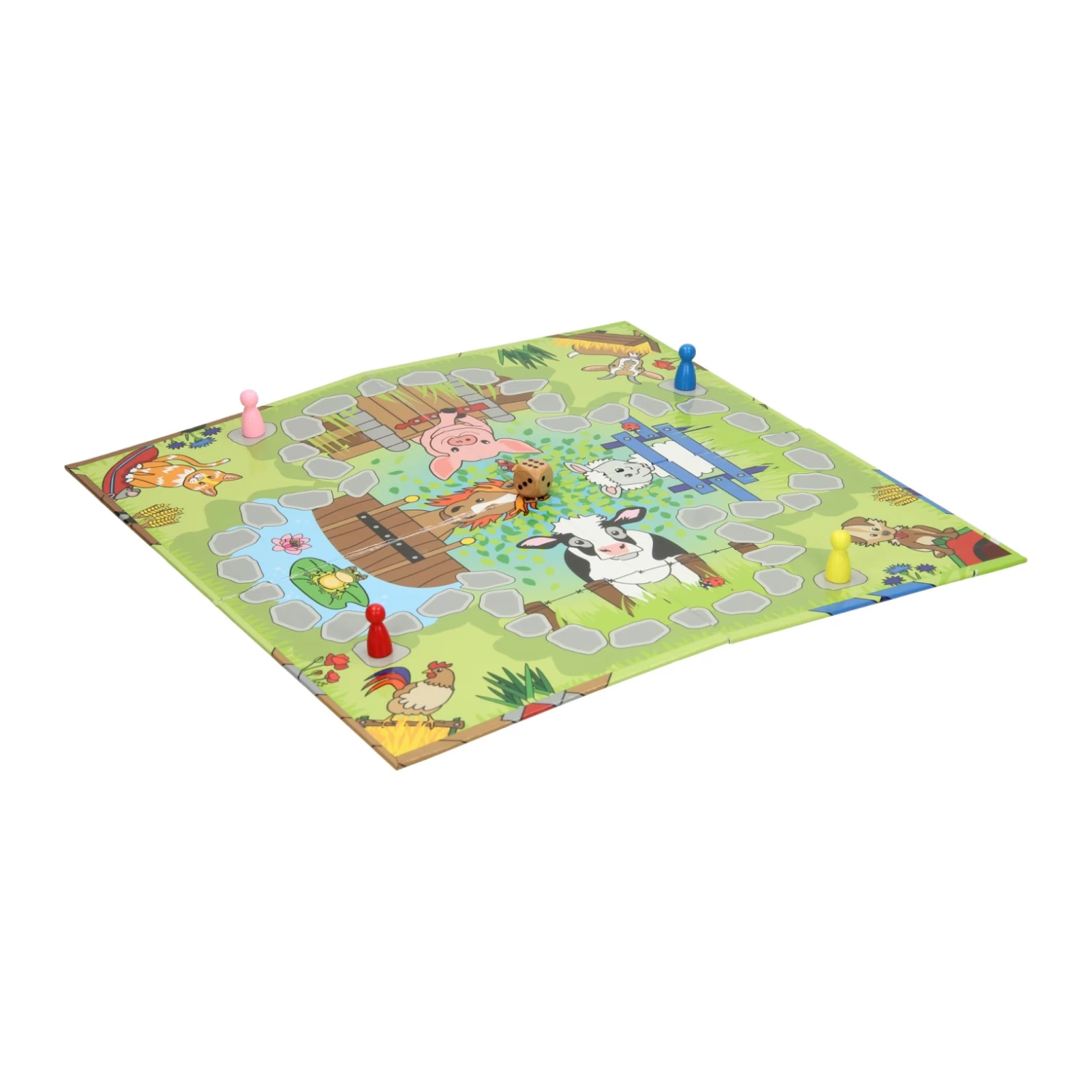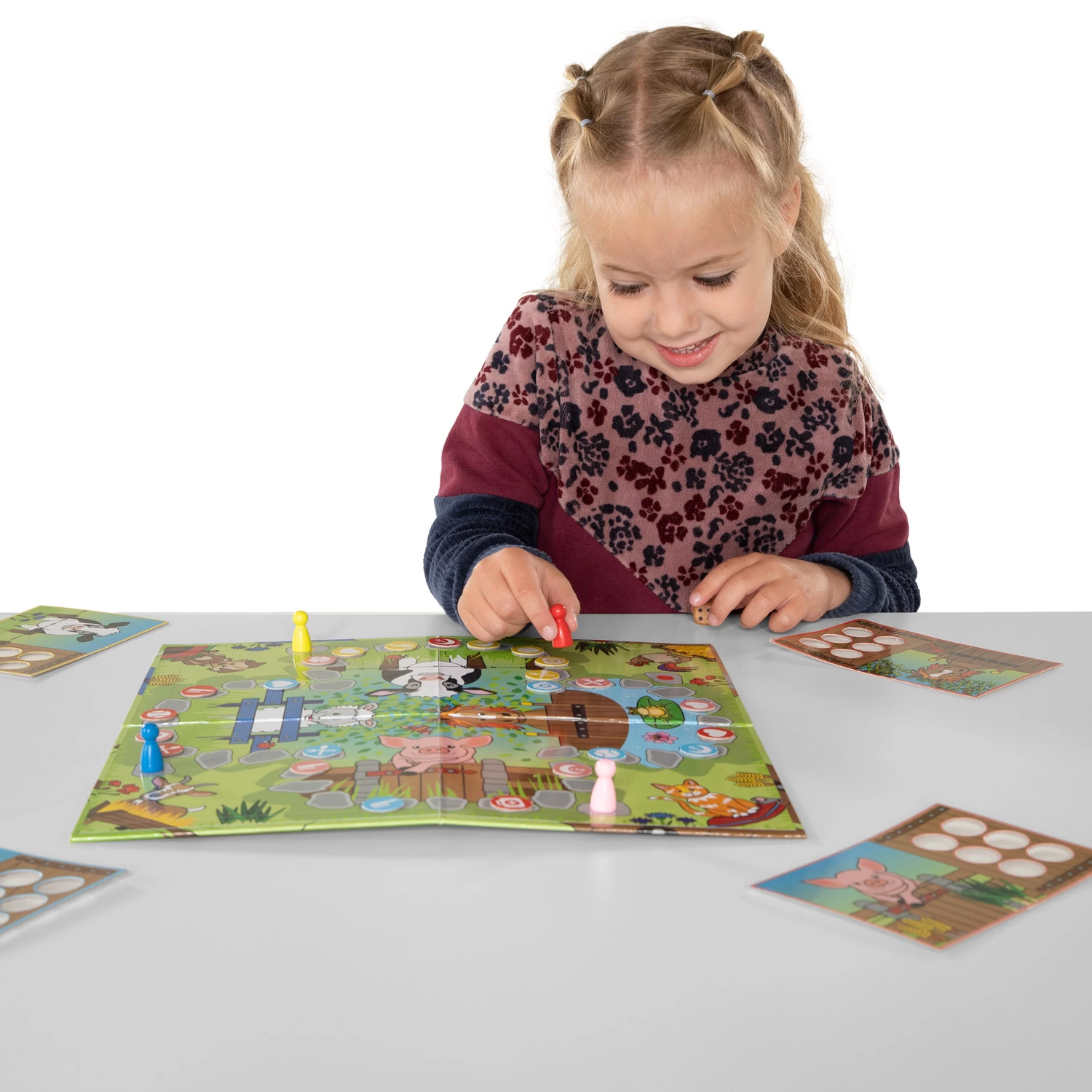 Voor het spel begint verdeelt iedereen om de beurt zijn taken over het bord. Dieren eten geven, aaien of spelen: het is hard werken op de boerderij. Gooi met de dobbelsteen en loop met je pion over het bord. Elke keer als je een dierentaak passeert, mag je deze pakken en meenemen. Degene die als eerste alle taken vervuld heeft, wint!