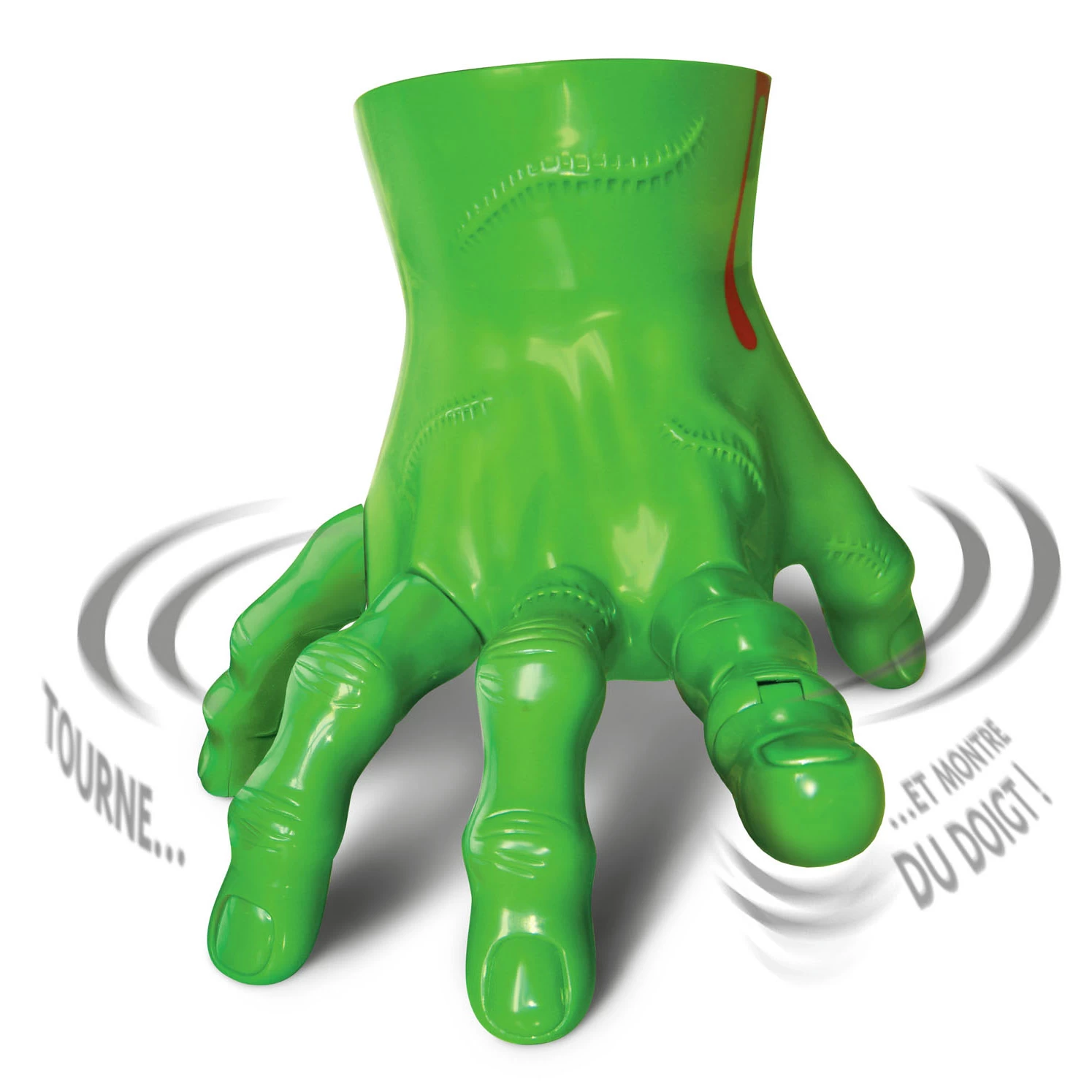 Deze grappige hand verrast groot en klein. Inderdaad! Een hand (van werkelijke grootte) verplaatst zich in cirkels op de tafel. De hand stopt en wijst een willekeurige speler aan. Deze speler moet zich nu wagen aan een vraag gekozen door de tegenspelers: āWaarheidā of āDurvenā?