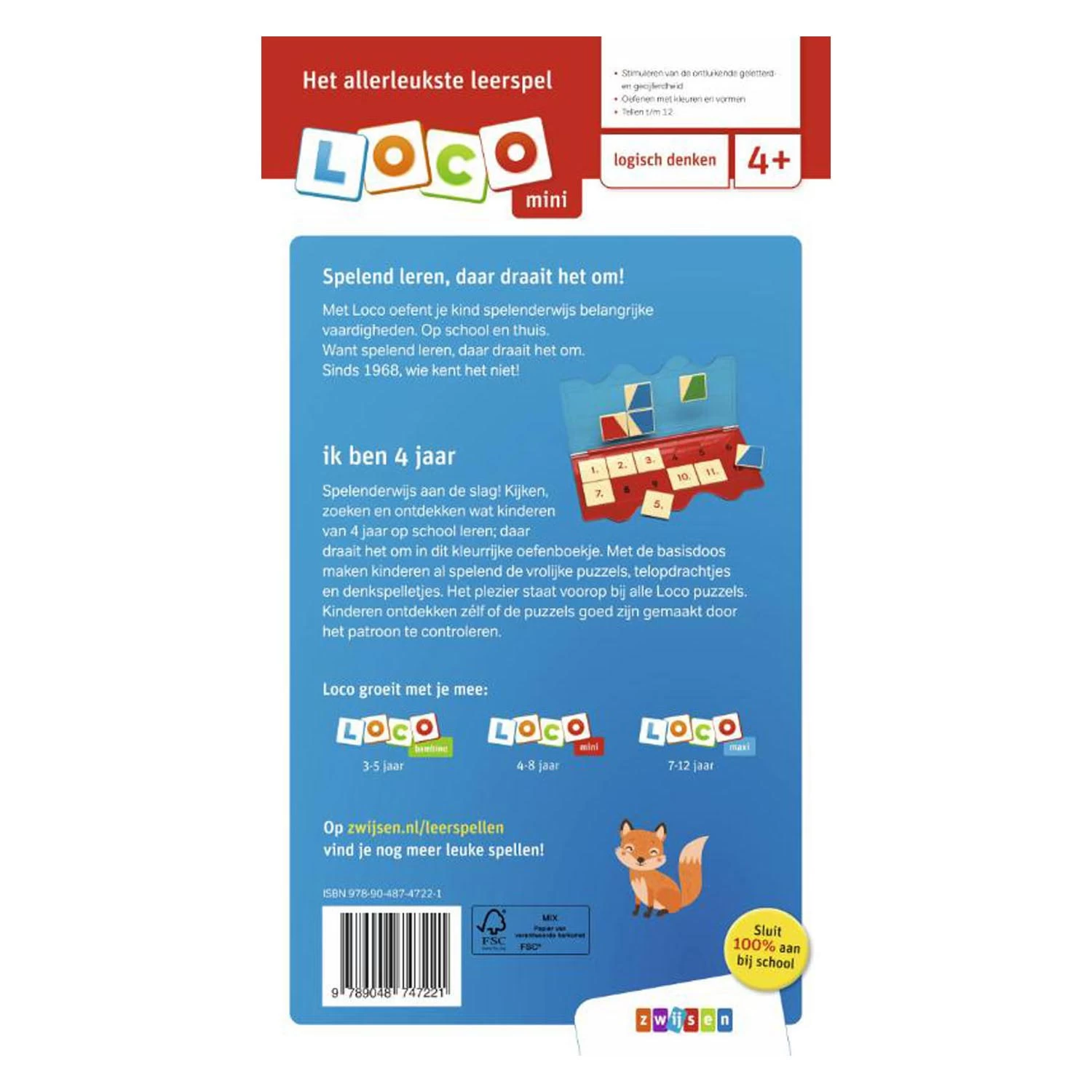 Spelenderwijs aan de slag! Kijken, zoeken en ontdekken wat kinderen van 4 jaar op school leren; daar draait het om in dit kleurrijke oefenboekje. Met de basisdoos maken kinderen al spelend de vrolijke puzzels, telopdrachtjes en denkspelletjes. Het plezier staat voorop bij alle Loco puzzels. Kinderen ontdekken zélf of de puzzels goed zijn gemaakt door het patroon te controleren.