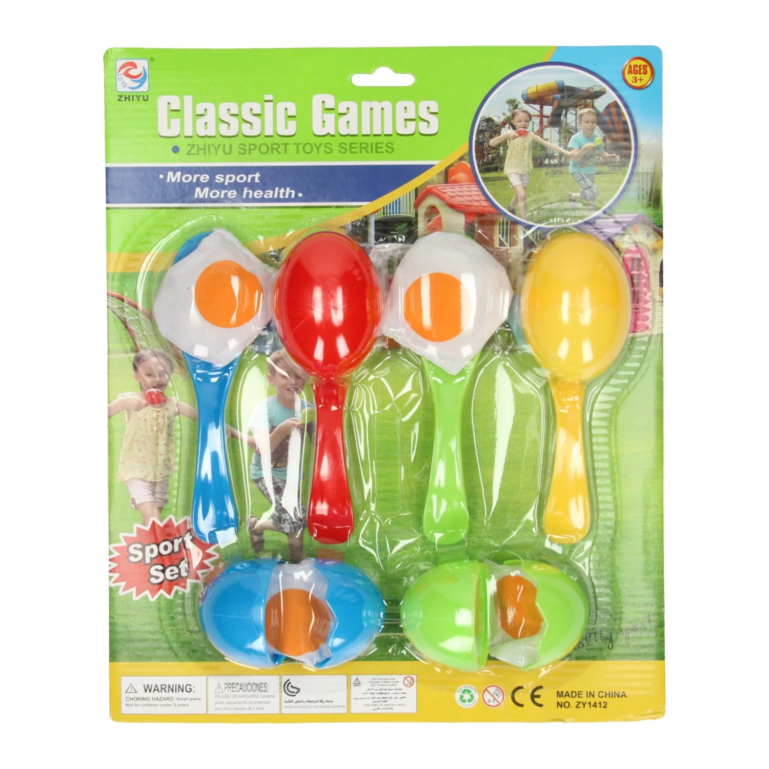 Beleef eindeloos plezier met dit klassieke spel Oud-Hollands eieren lopen. Inhoud: 4 lepels, 4 eieren en 4 katoenen spiegel eieren.