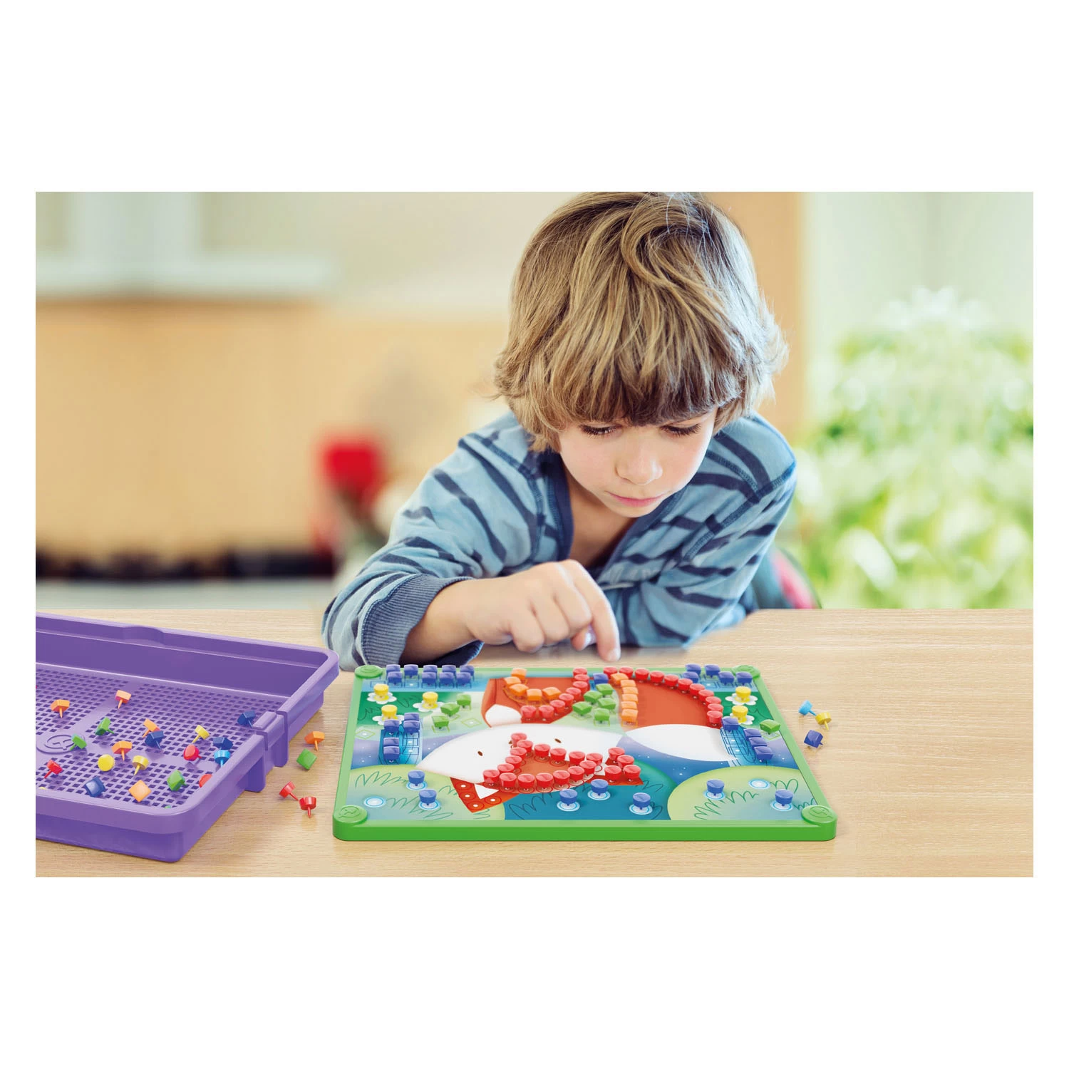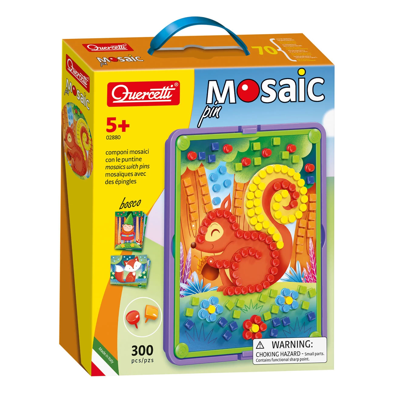 Quercetti insteek mozaïek eekhoorn. Steek de kleurrijke pinnen in de geïllustreerde kaarten en maak spectaculaire mozaïeken. Gebruik de praktische koffer om alles op te bergen na het spelen. Geschikt vanaf 5 jaar.