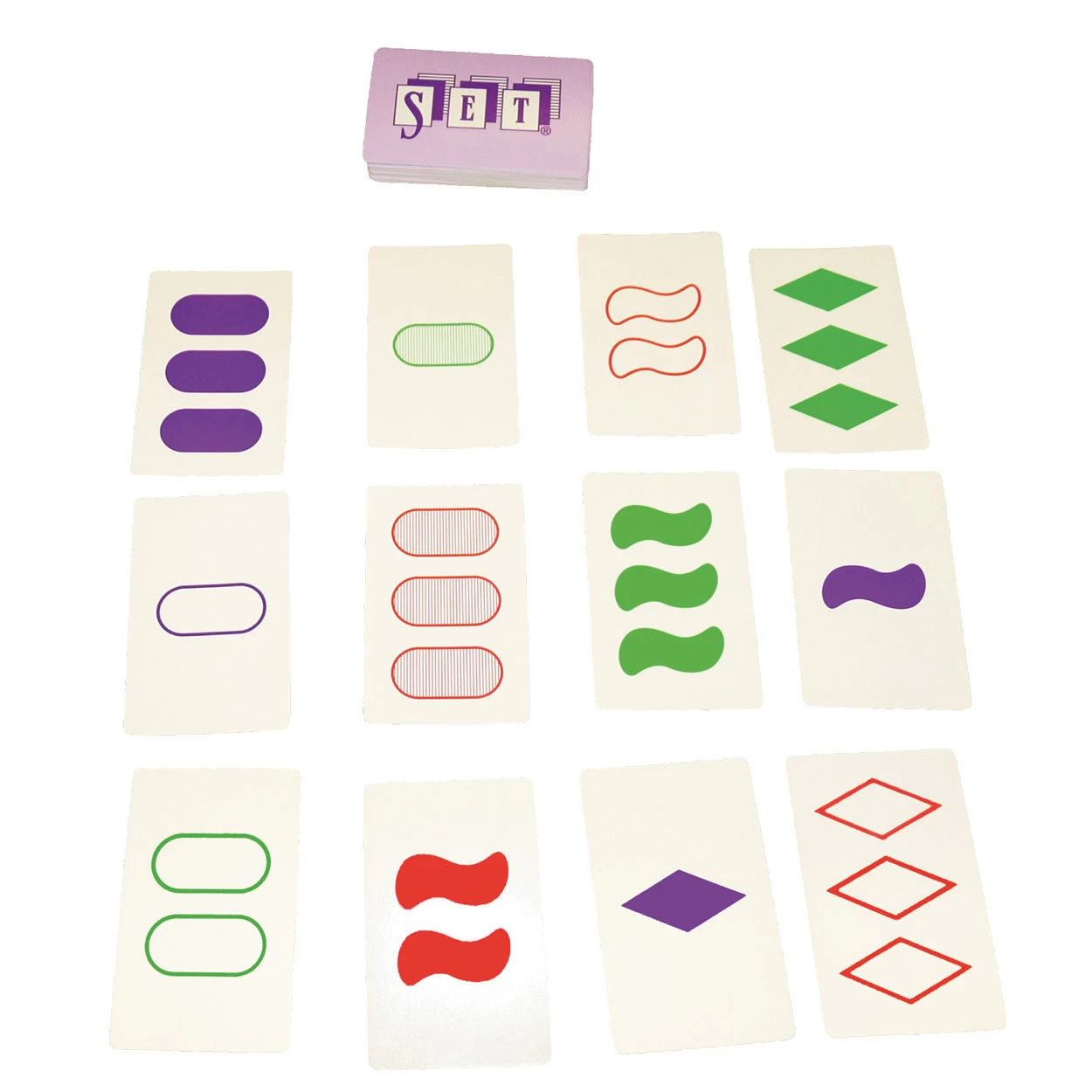 SET! Of toch niet? Concentreren, combineren en snel reageren is het devies in dit pijlsnelle spel. Kleur, vorm, vulling en aantal. Zoek drie kaarten waarop deze eigenschappen totaal verschillend of helemaal gelijk zijn. Dat lijkt eenvoudig, maar valt absoluut niet mee! Aantal spelers: 1-8. Geschikt voor kinderen vanaf 6 jaar.