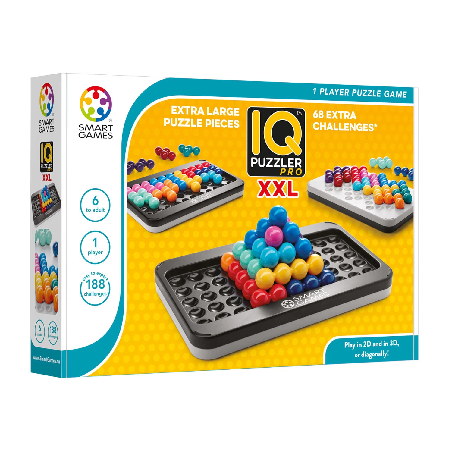 Ontdek deze extra grote versie van het compacte IQ Puzzler Pro spel! Meerdere niveaus van hersenbrekers! 188 opdrachten in drie spelvarianten op het extra grote spelbord. Ontdek deze extra grote versie van het compacte IQ Puzzler Pro spel! Meerdere niveaus van hersenbrekers! Op de bovenkant van het spelbord speel je 2D opdrachten en vind je een apart raster voor piramides, terwijl je op de onderkant van het spelbord totaal andere 2D opdrachten speelt. Inclusief 68 extra opdrachten, bovenop de 120 originele opdrachten van IQ-Puzzler Pro!