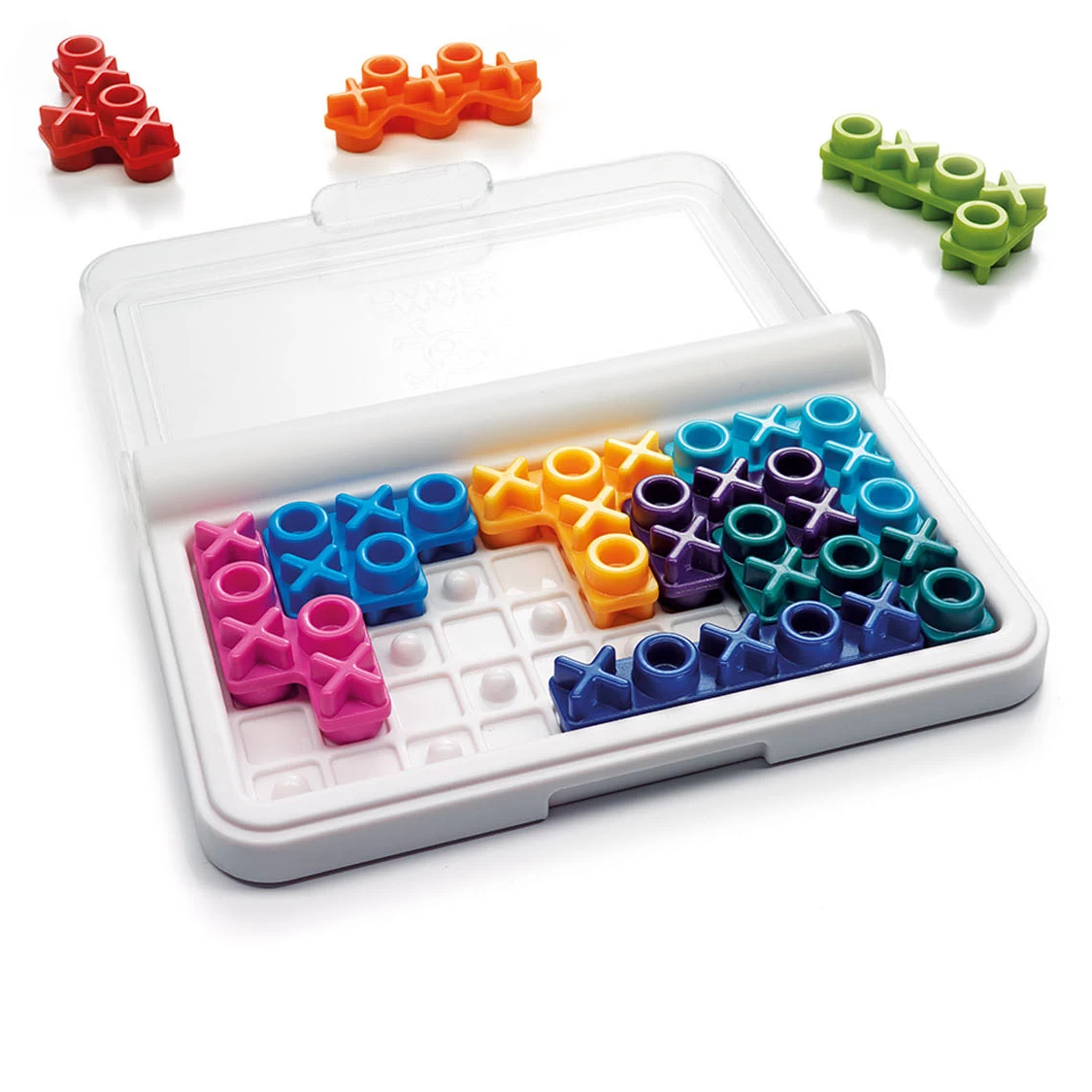 Kusjes en knuffeltjes, maar hou je hoofd erbij dit is een echt denkspel. Open de cassette en haal de puzzelstukjes er uit. Kies een van de 120 uitdagingen en probeer de puzzel af te maken. Alle puzzelstukjes hebben verschillende vormen en maten. De X en de O zijn ook verschillend, op sommige plekken kun je het stukje niet neerleggen omdat de X op het bultje ligt waar de O in hoort. Het beginner niveau is het makkelijkst, de eerste paar puzzelstukken liggen er al, je hoeft er nog maar enkele bij te leggen. Het expert niveau is het lastigst, er ligt maar één puzzelstuk voor je klaar. In totaal zijn er 4 verschillende niveaus. Het spel is handig op te bergen in de cassette.