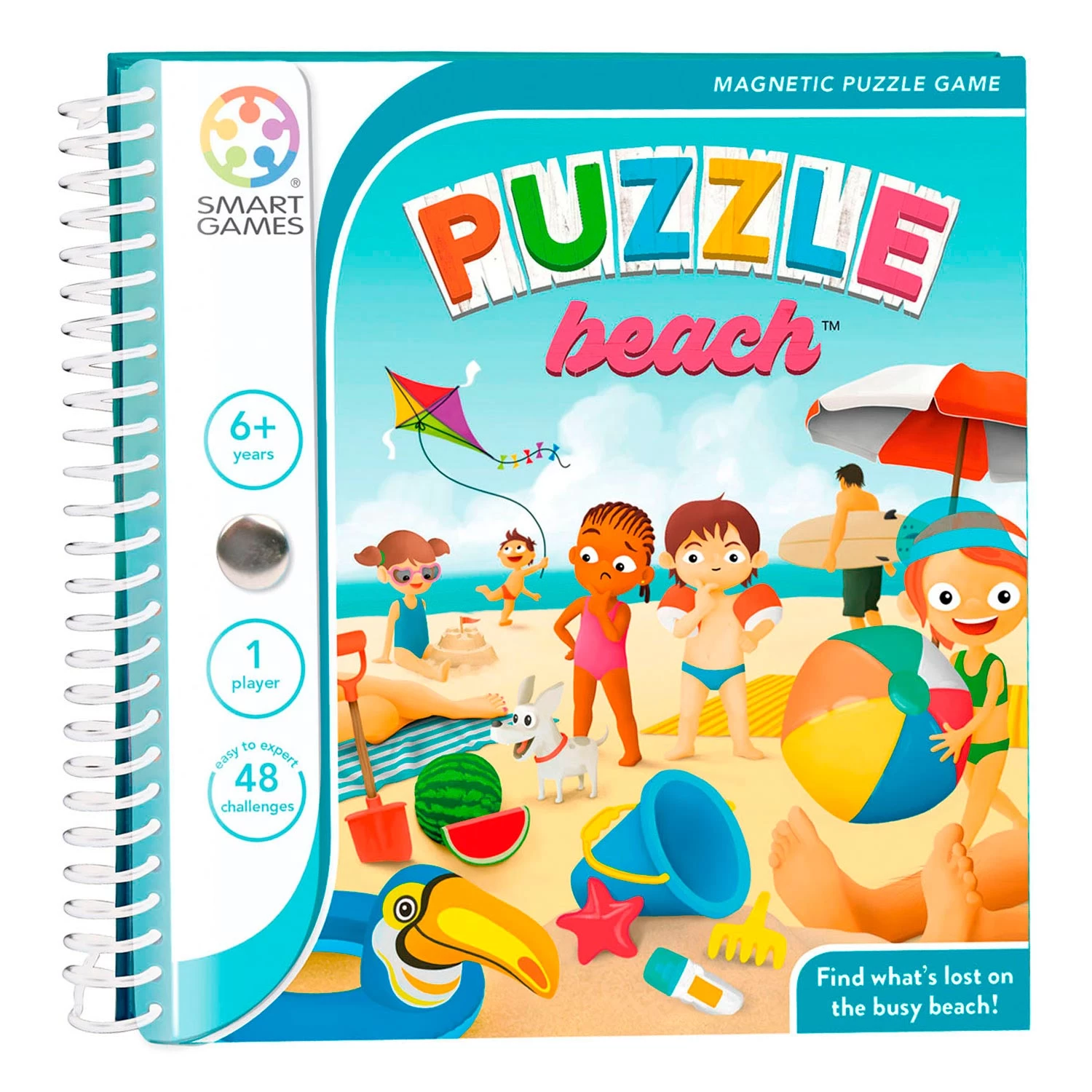 Het is druk op het strand! Met zoveel mensen raak je makkelijk de weg kwijt… Help jij de kinderen de weg terug te vinden naar hun vriendjes en speelgoed? Let wel op dat ze op niemand stappen die in de zon ligt te luieren! Puzzle Beach is een reisspel met 5 magnetische puzzelstukken en 48 opdrachten van eenvoudig tot moeilijk. Dankzij het compacte formaat neem je het overal mee naartoe.