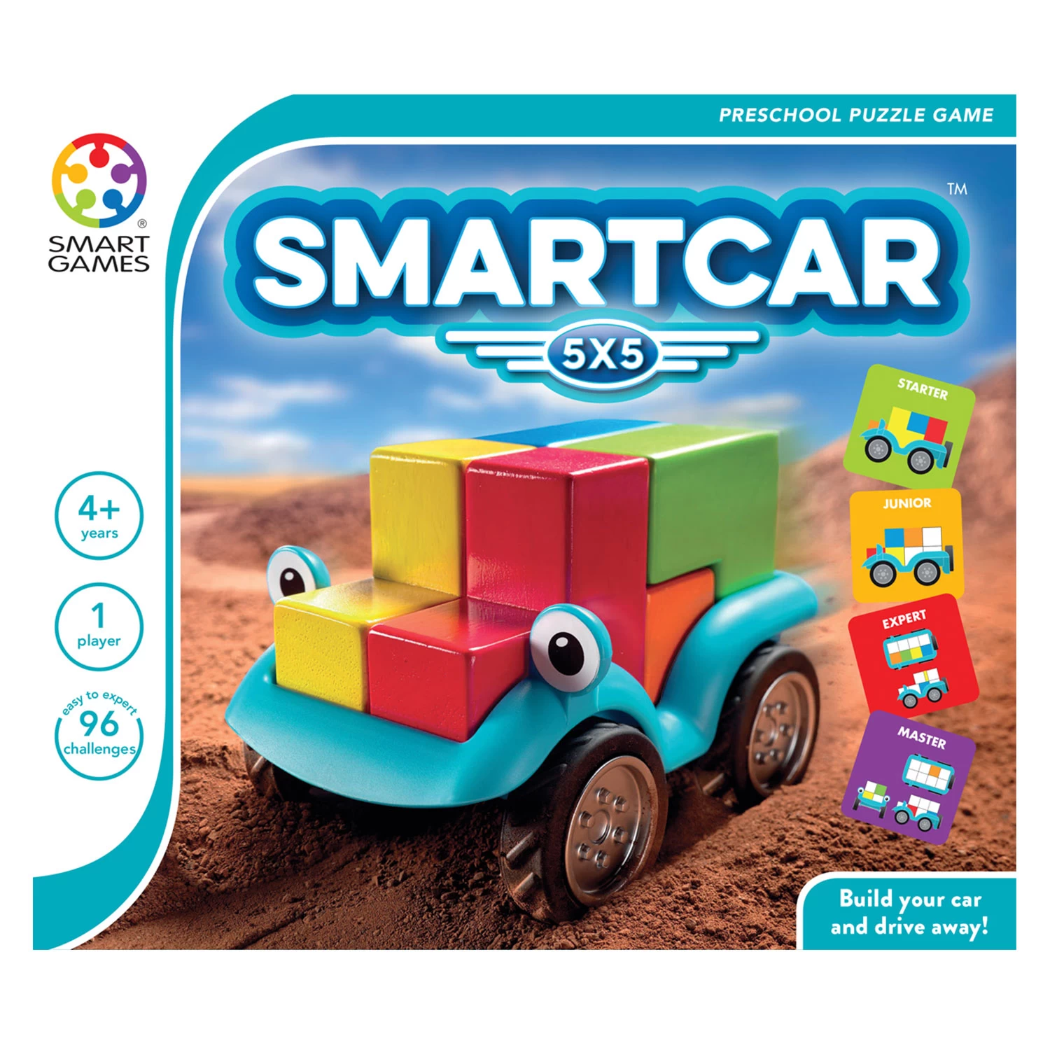 Daag je kinderen uit om een auto te bouwen met 5 verschillende blokken in dit unieke denkspel! Smartcar 5×5 bevat een auto en 5 kleurrijke houten blokken. De 96 opdrachten los je op door de blokken aan de hand van de tips op de juiste manier in de auto te plaatsen. Smartcar 5×5 is een denkspel en een speelgoedauto.. los de opdracht op of maak er een ritje mee!