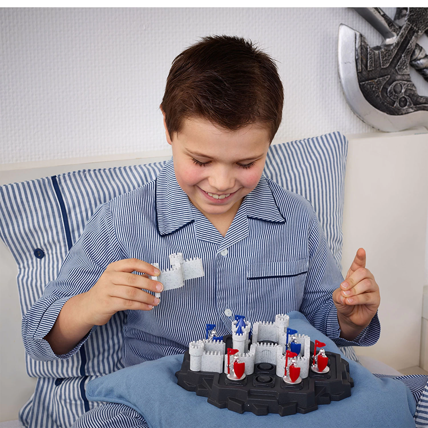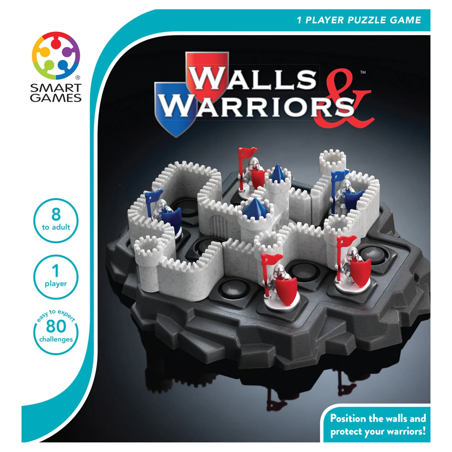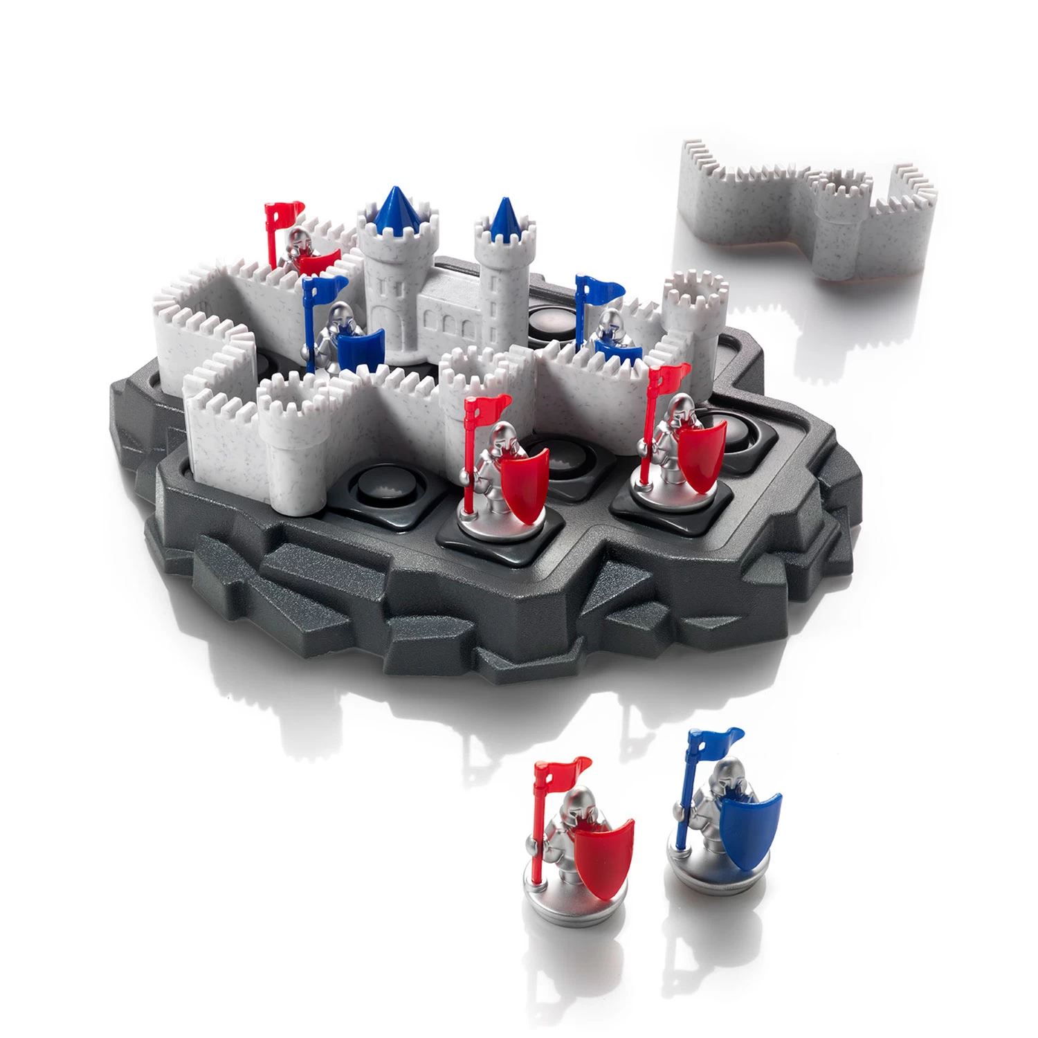 Kan jij de muren op het spelbord zo plaatsen dat de lauwe ridders binnenin het kasteel zitten en de rode buiten blijven?